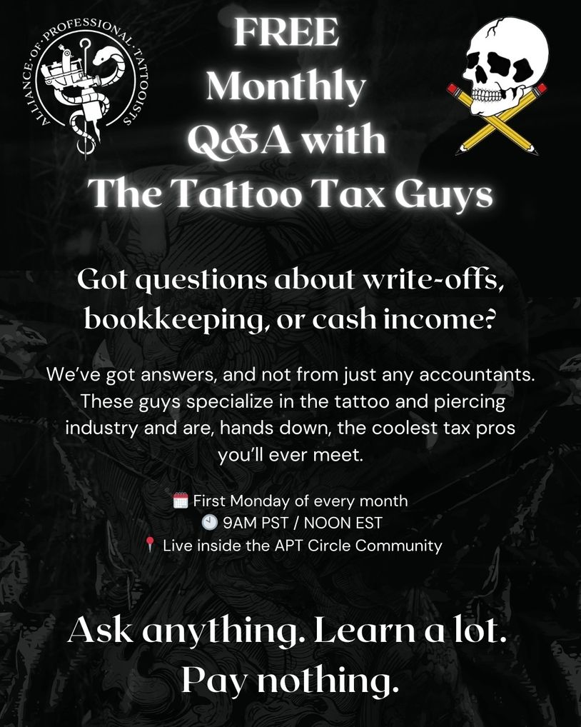 Calendar of Events: Join us for engaging webinars, Q&As, and community events designed to educate, empower, and connect professional tattooers. Stay up to date and never miss a chance to learn, grow, and get involved!
